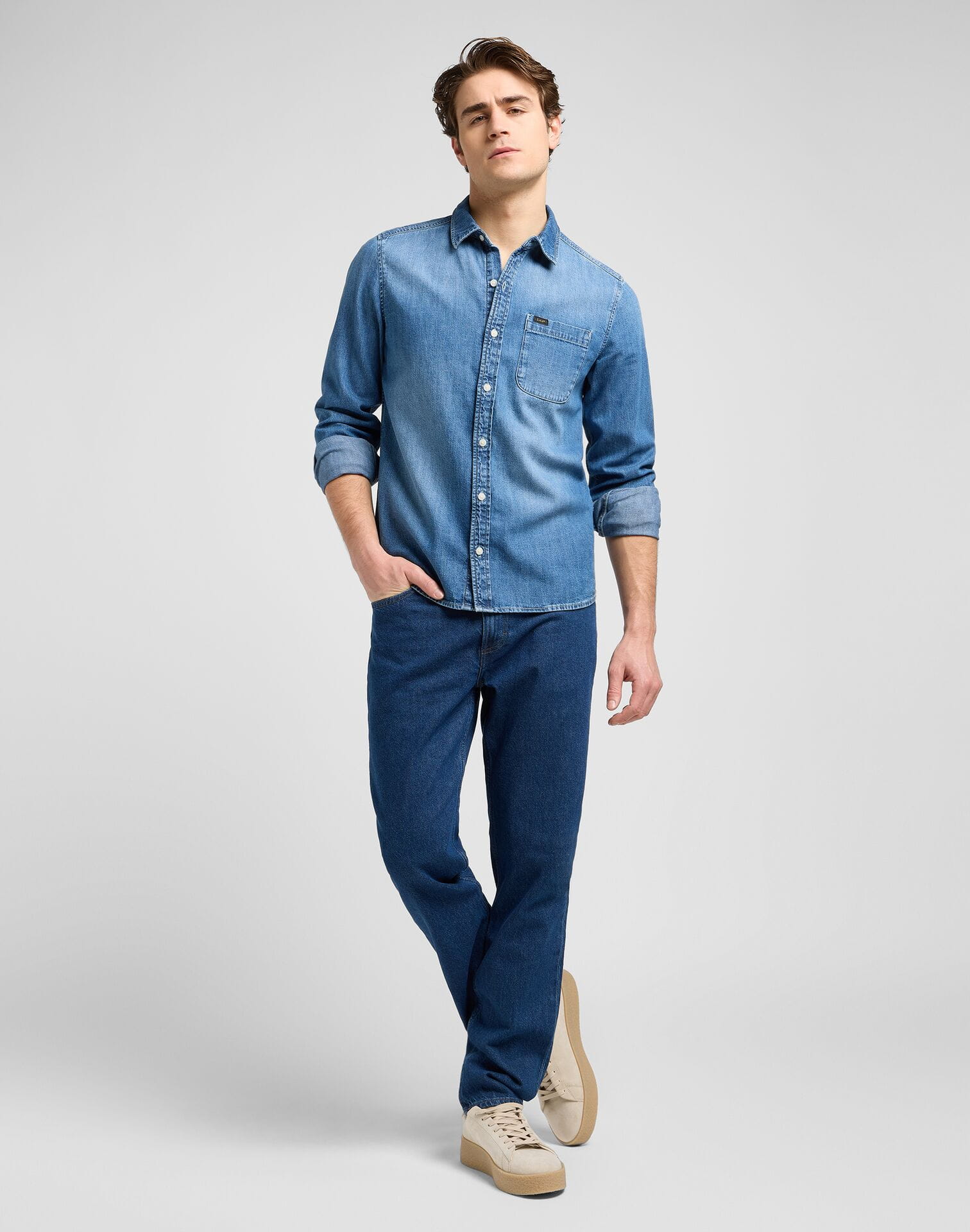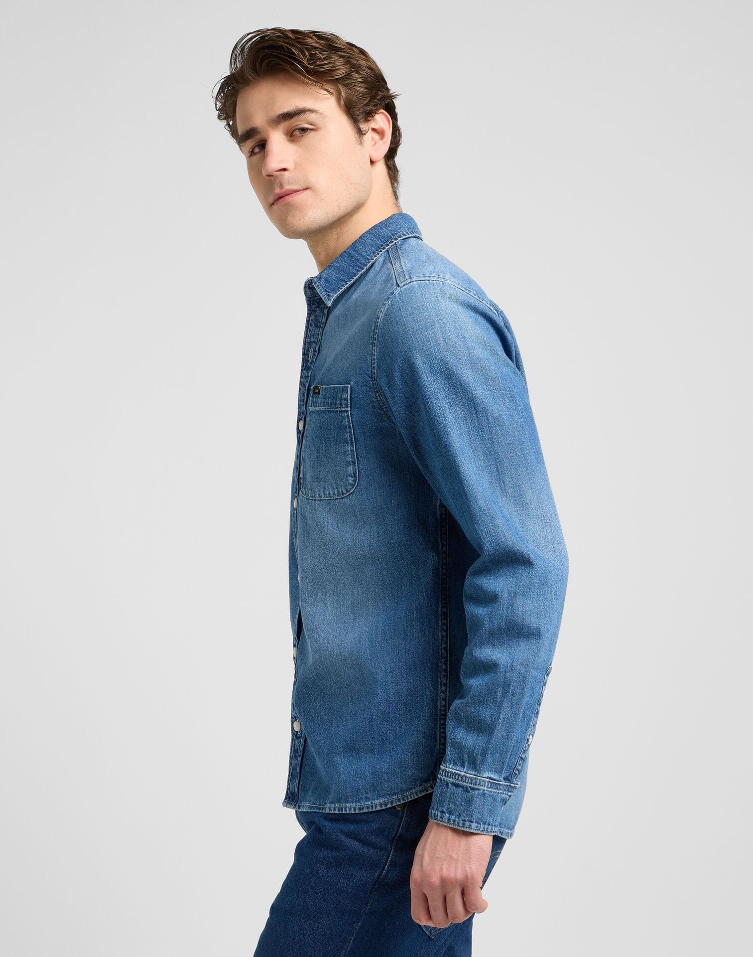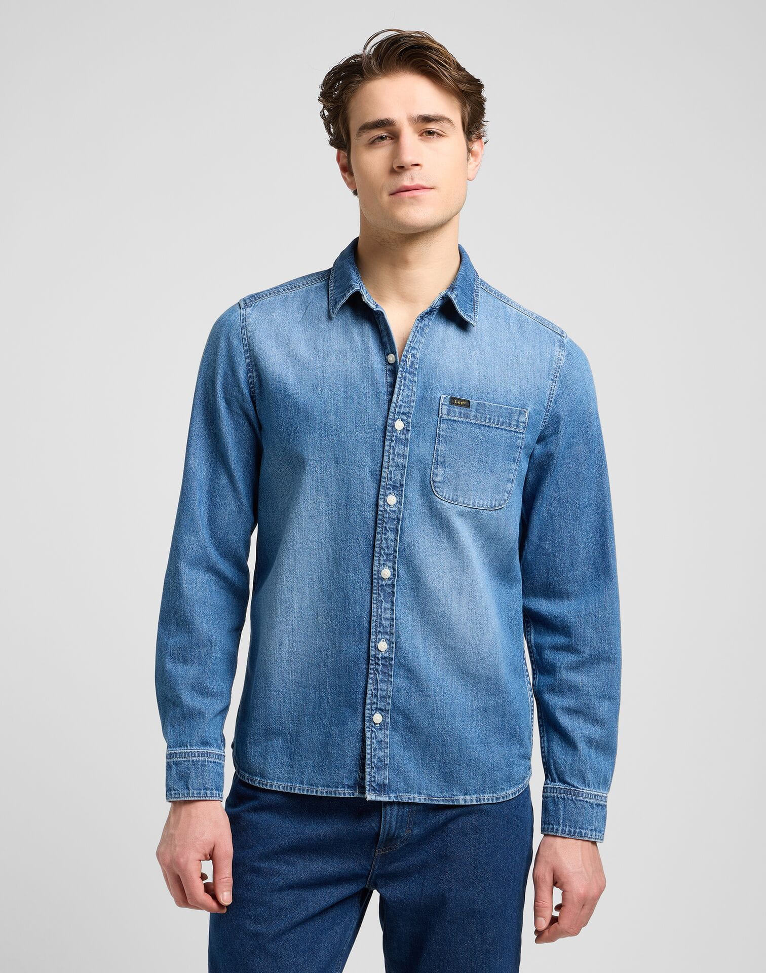 KOSZULA LEE 112370551 LEESURE SHIRT MID BLUE DENIM