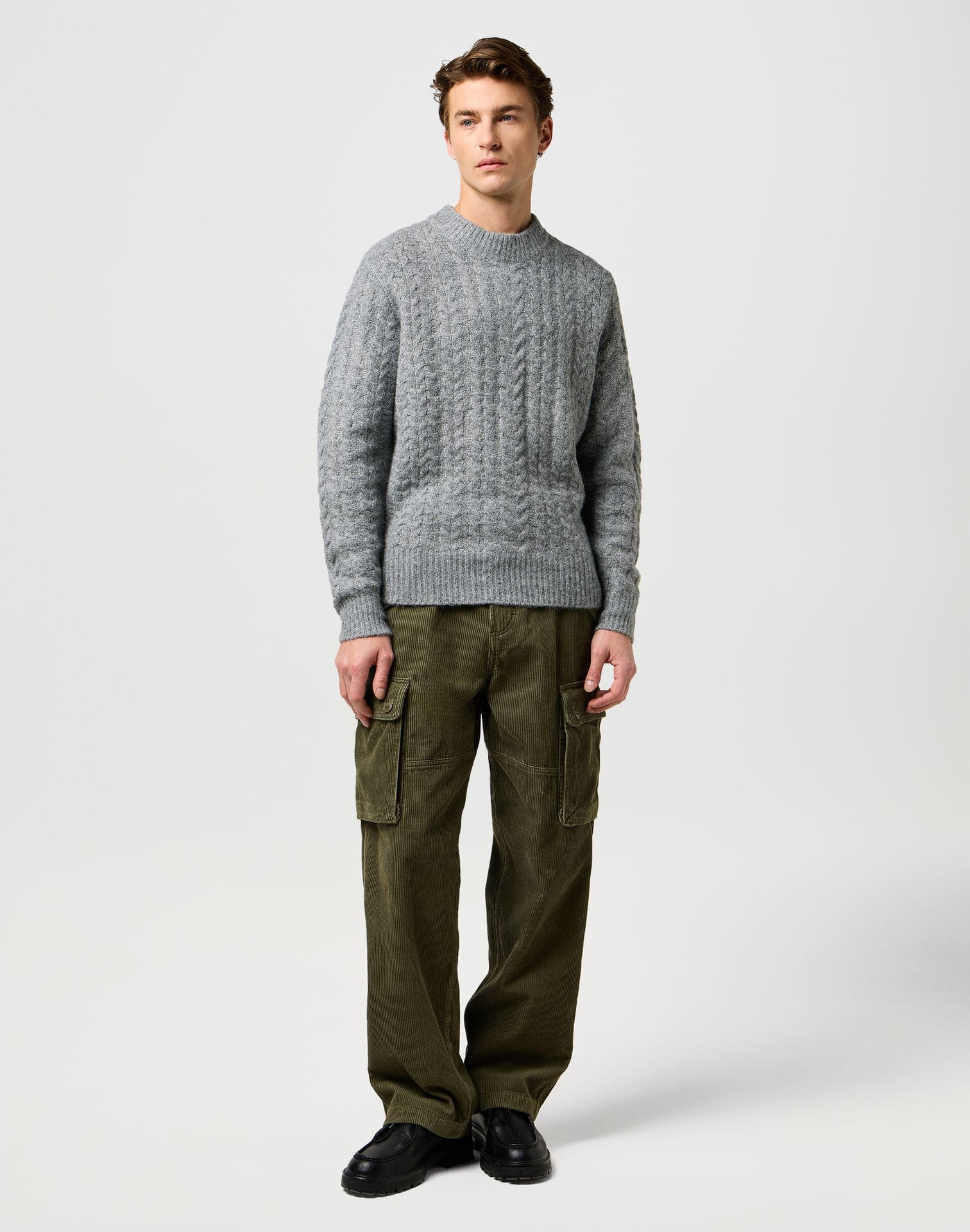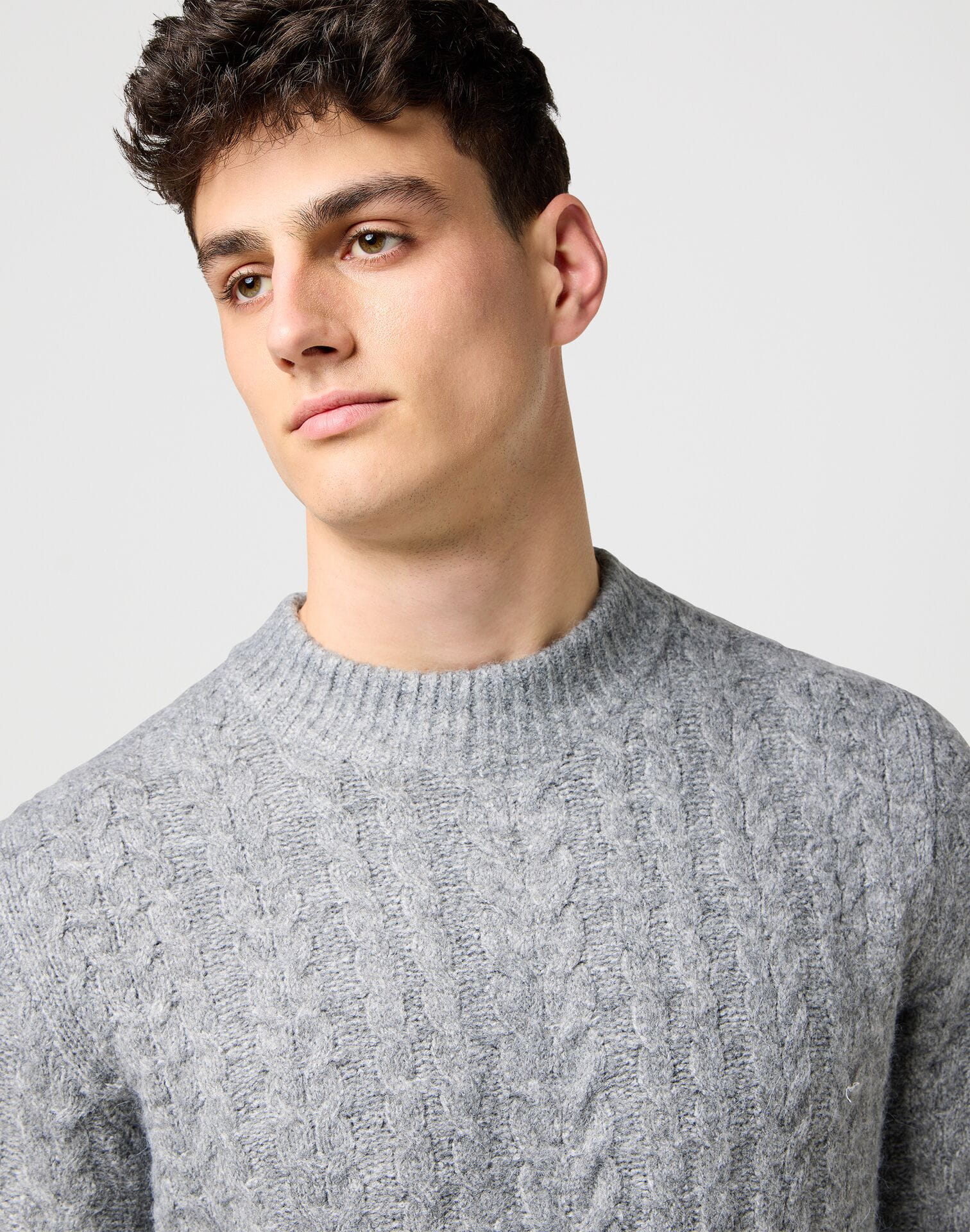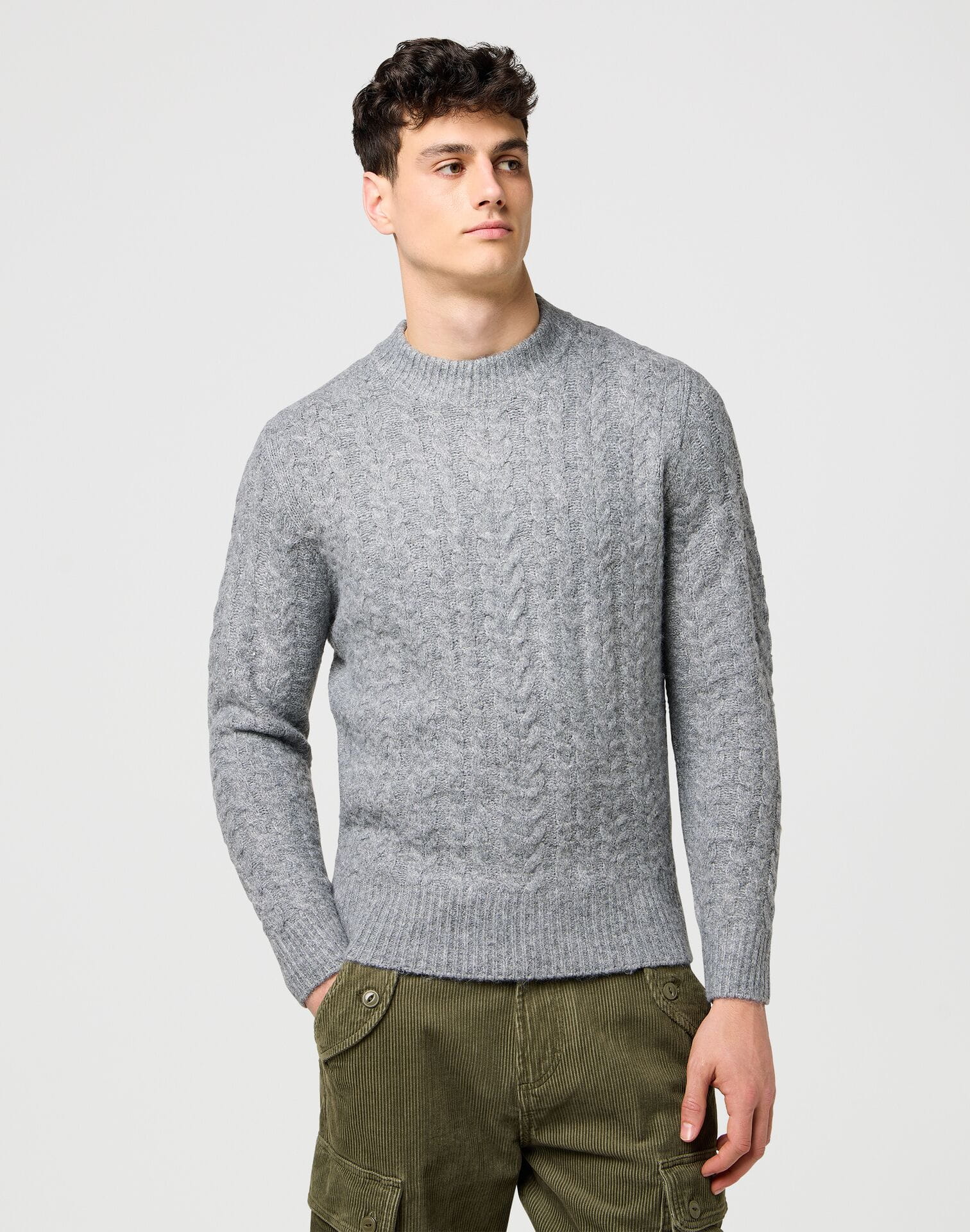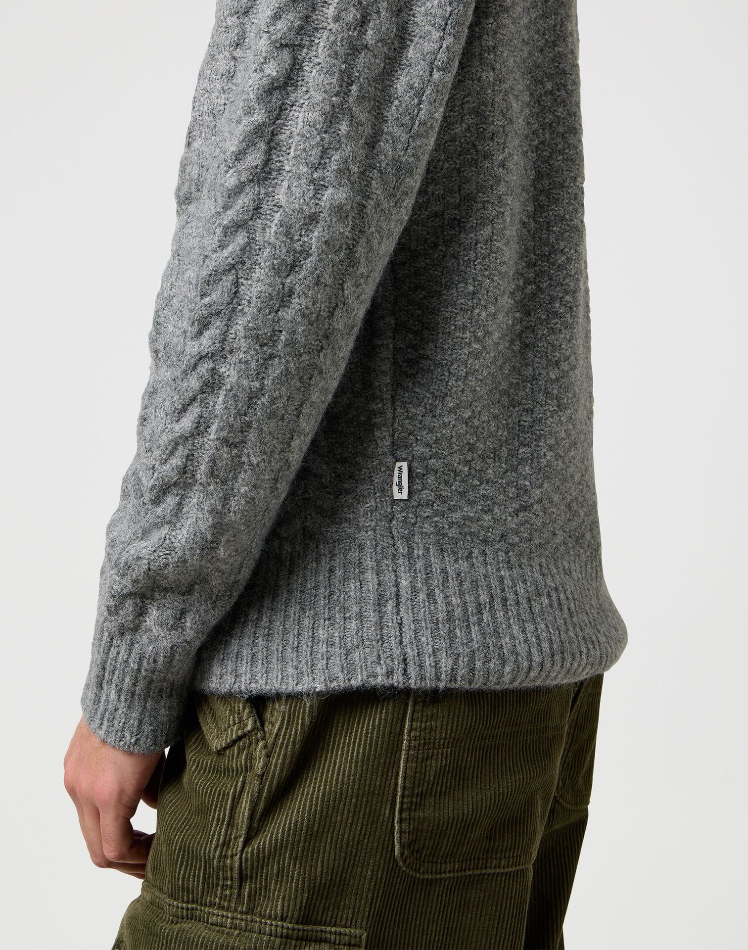 SWETER WRANGLER 112371666 CABLE KNIT SWEATER GREY HEATHER